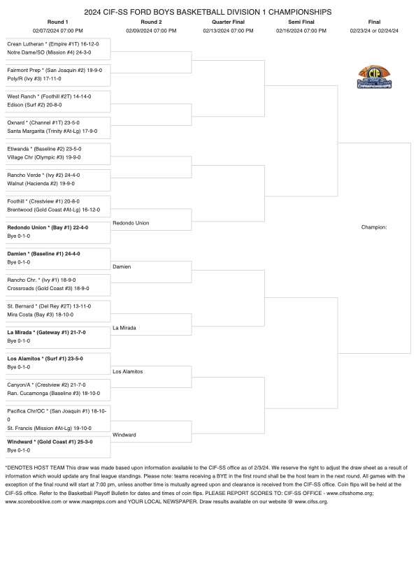 In the Division One bracket, the Damien Spartans secured their first-place finish in the Baseline League with an impressive overall record of 24-4. This achievement grants them a bye week in Round One play, setting the stage for an exciting Round Two matchup against the winner from Crossroads vs. Rancho Christian. Etiwanda Eagles, finishing second in the Baseline League with a commendable 23-5 overall record, will host Village Christian, the third-place team from the Olympic League.