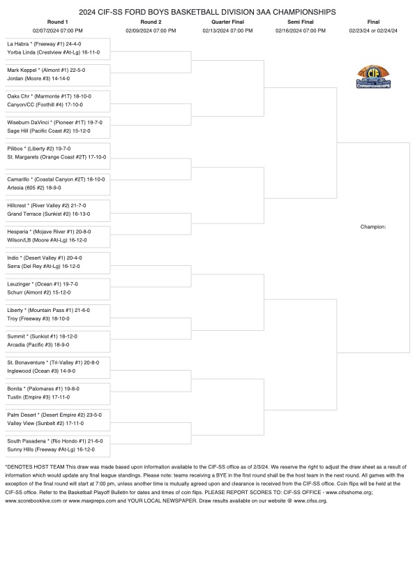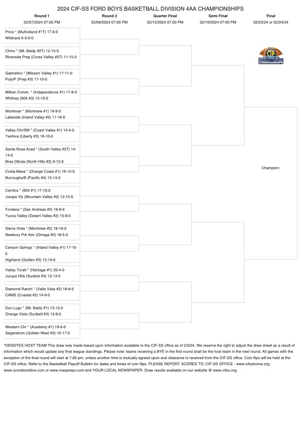 In the Division 4AA bracket, the Mt. Baldy League teams, including Don Lugo Conquistadors, Chino Cowboys, and Valle Vista League team Diamond Ranch Panthers, will defend their home court against worthy adversaries, promising riveting matchups for basketball enthusiasts.