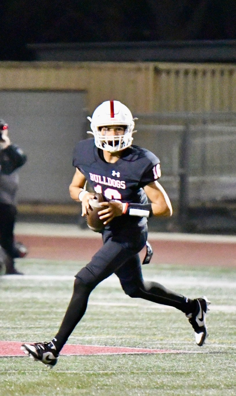 In the 4th quarter, Colony’s QB Liam McDaniel scrambles and hits Orestes Bahorques for a 10-yard touchdown, but it’s not enough to overcome the Bulldogs, who secure a 28-14 victory.