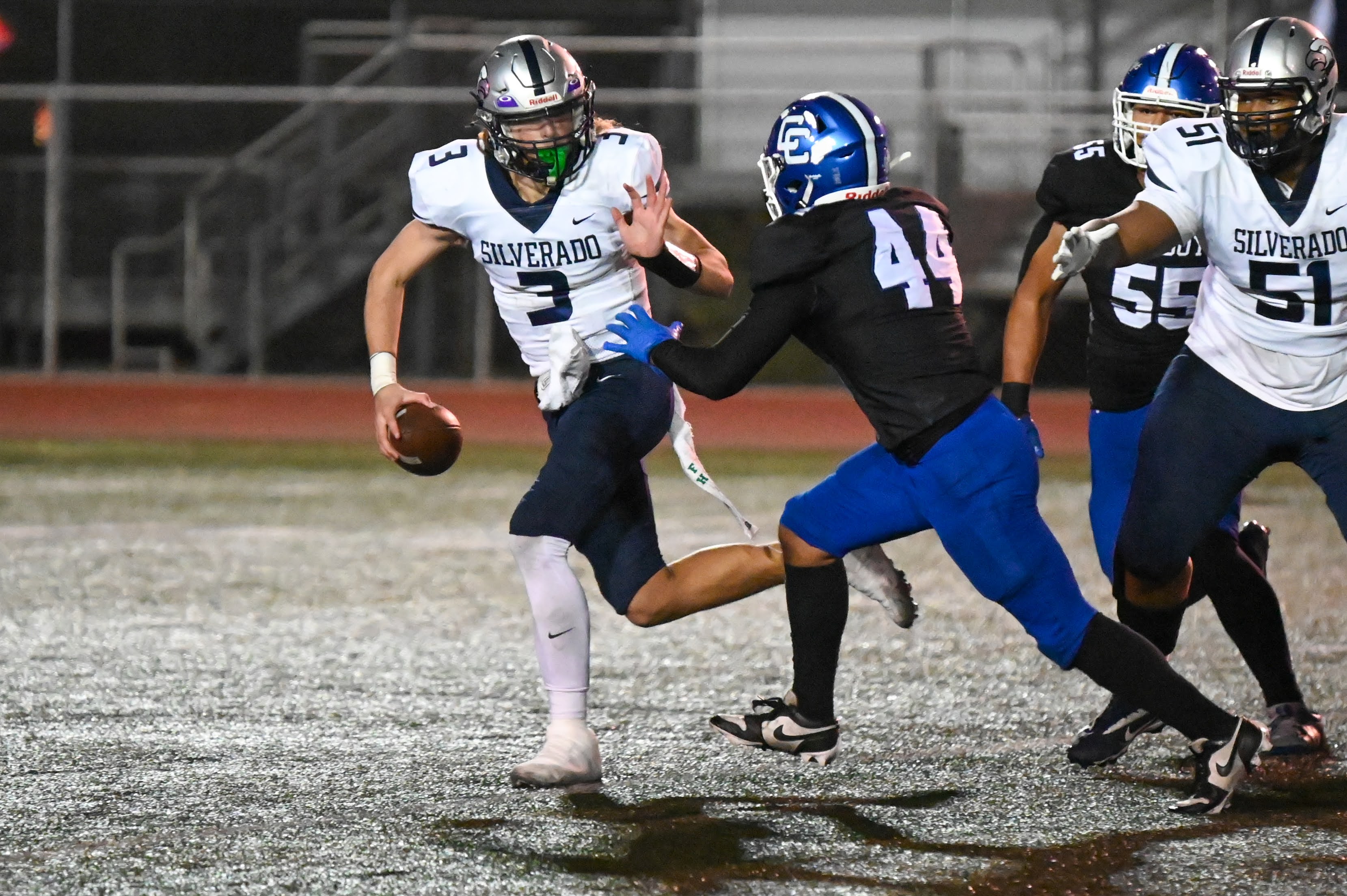 The second half was marked by explosive plays on both sides. Barroso extended Chino’s lead early in the third quarter with a 24-yard quarterback keeper for a touchdown. Silverado responded swiftly, with Dallas Kincherlow powering his way into the end zone, narrowing the score to 25-21.