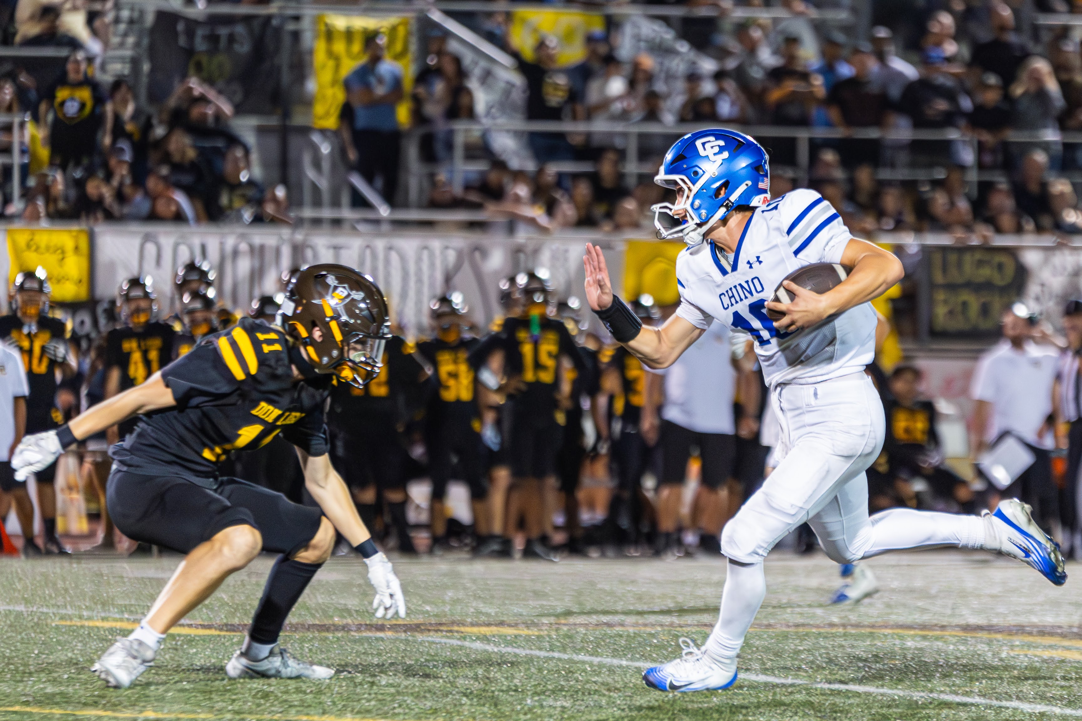 The game began with drama when Chino recovered a Don Lugo fumble on the opening kickoff, but both defenses held firm through the first quarter. In the second, senior running back Nathan Bull—playing in his first game since Week 0—broke free for a 21-yard touchdown run to put Chino on the board.